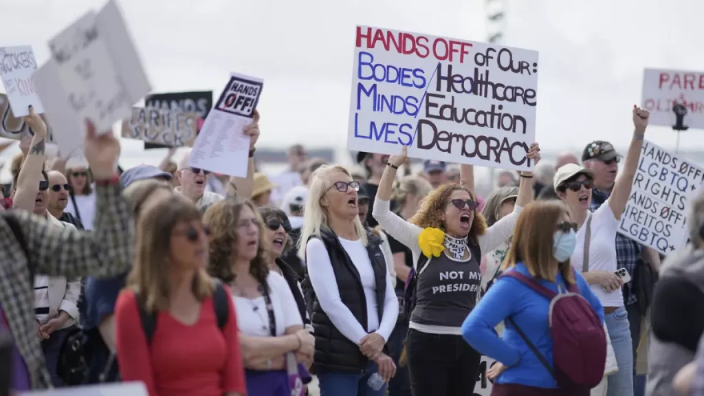 Los activistas levantaron carteles condenando los ataques a la democracia, los derechos civiles y programas públicos como la Seguridad Social y Medicaid. Los manifestantes expresaron su preocupación por los importantes recortes a los programas federales, en particular la reducción de más de 12 mil millones de dólares en fondos para la atención médica, los recortes de empleos en el Departamento de Educación y la desfinanciación de instituciones culturales.