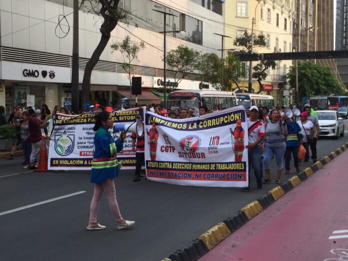 Por su reposición y la exigencia del pase a planilla de las obreras y obreros de Lima Metropolitana del Sitobur no dejaron de vocear la corrupción de las municipalidades y los “arreglos” con tercerizadoras para la contrata de trabajadoras/os con salarios bajísimos y sin derechos laborales.